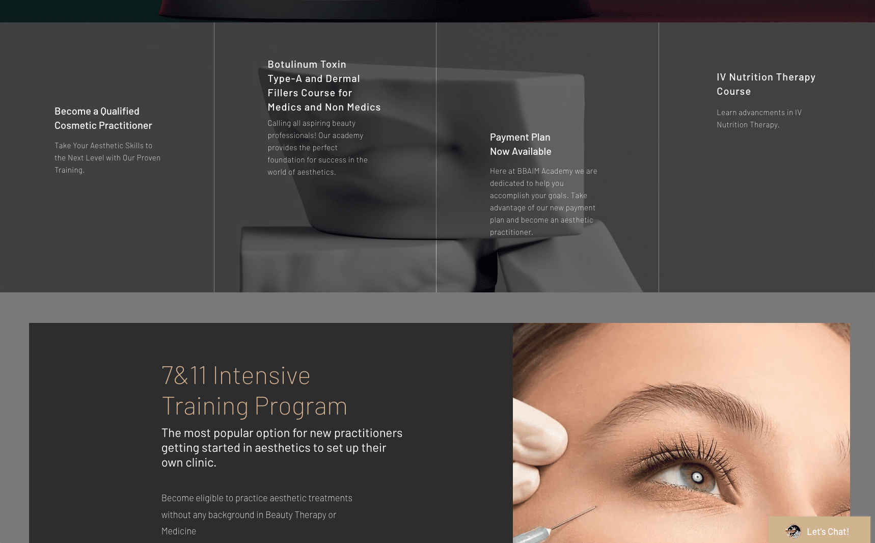BBAIM Academy required a robust and informative platform to serve as both a catalog of their aesthetic treatment courses and a dedicated portal for students. Our goal was to design a website that not only educates prospective students about the academy’s offerings but also enhances the learning experience for current students. Through thoughtful design and functionality, we created a platform that supports both discovery and learning, meeting the needs of all users.